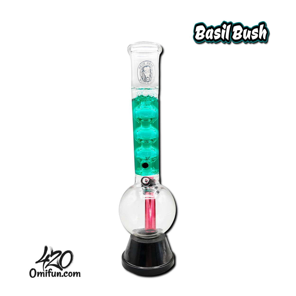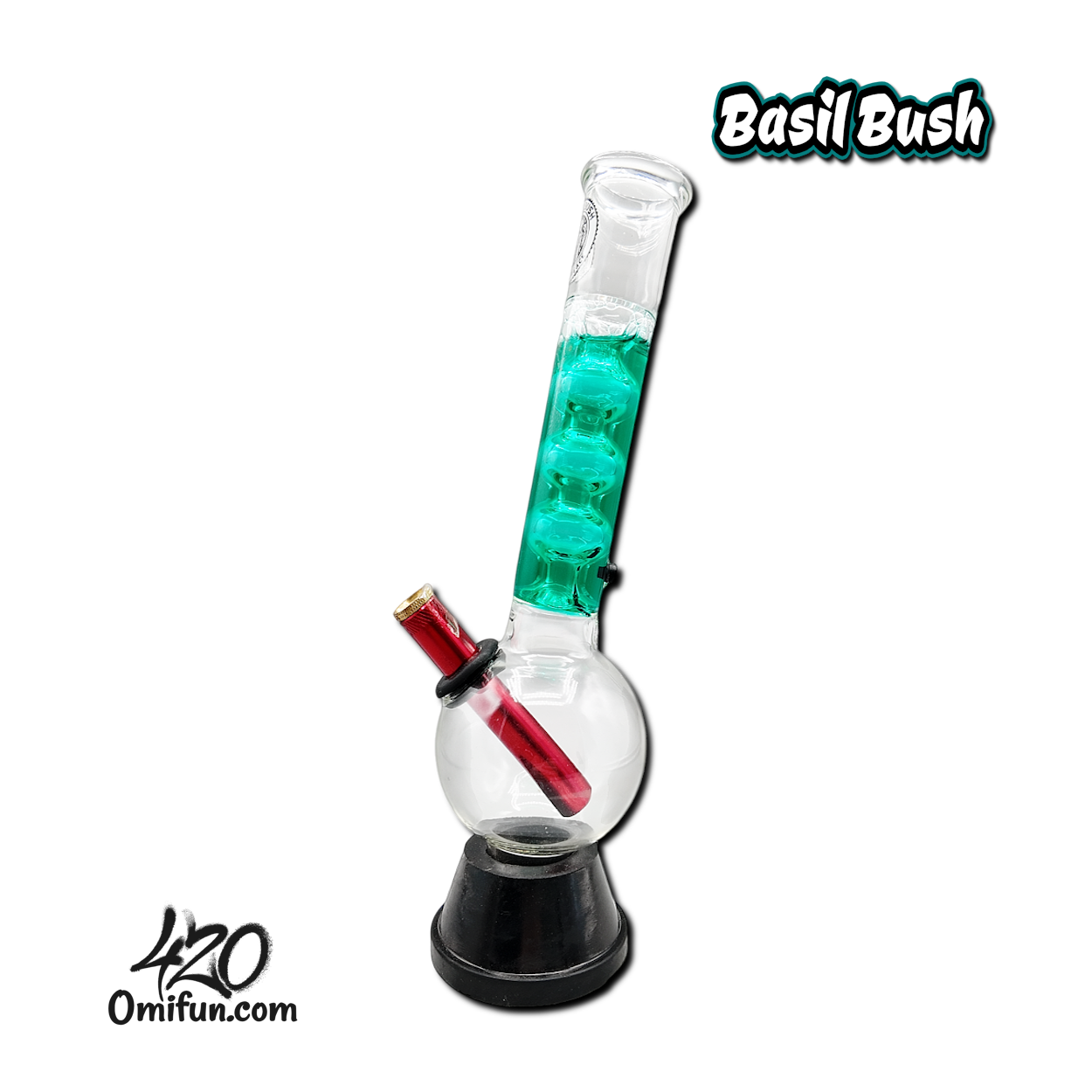 Glass Basil Bush 28cm Rainbow High Bong Green