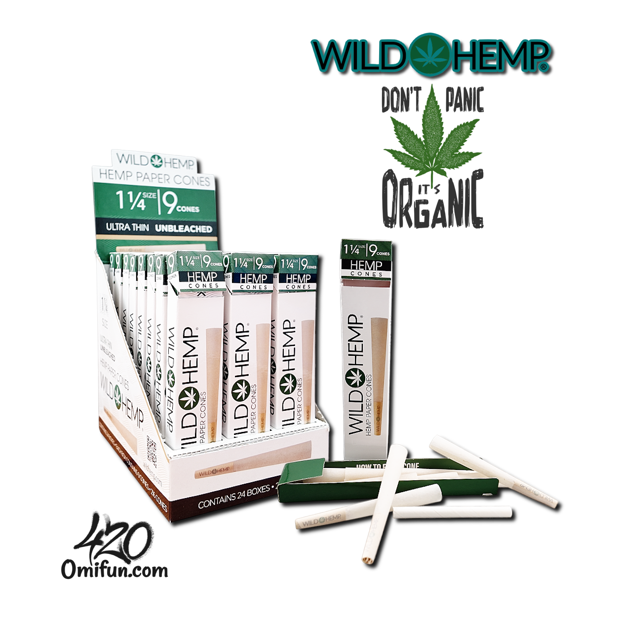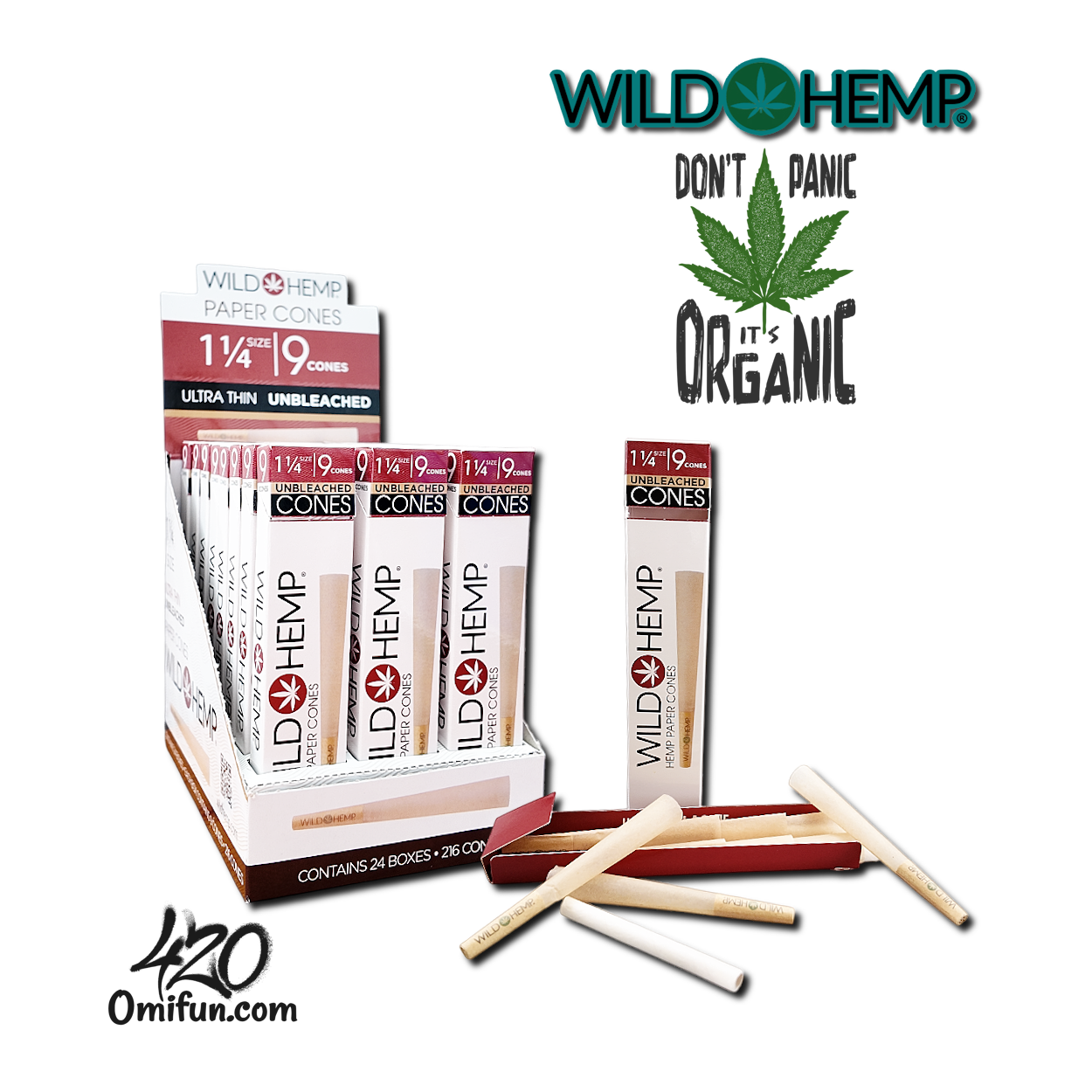 1. 🌱 Wild Hemp Unbleached 1 1/4 Size Cones (9 Cones/Pack)